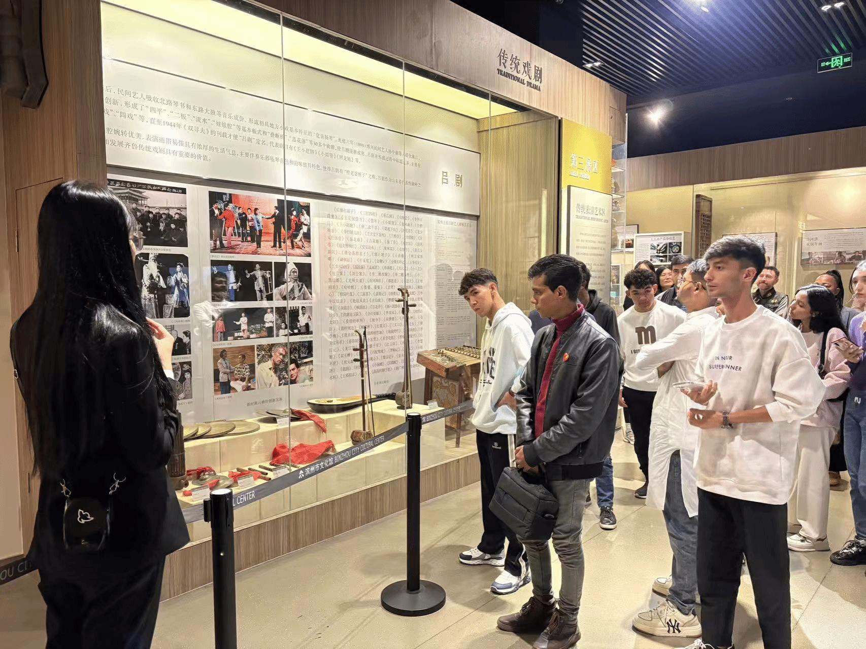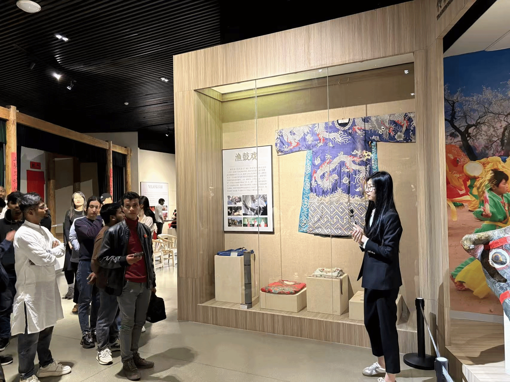 During the cultural exploration segment, international students embarked on an immersive journey tracing the origins of intangible cultural heritage. They wandered through themed exhibition areas such as “Folk Literature” and “Folk Art and Traditional Crafts”: listening to stories of renowned figures like Fan Zhongyan, feeling the depth of regional humanistic heritage; marveling at the intricate artistry of paper-cutting, woodblock New Year prints, and clay sculptures, appreciating the beauty of traditional techniques; and witnessed the ingenuity of Binzhou locals in harnessing nature to enrich daily life through dyeing, weaving, and wickerwork displays. This visit not only introduced international students to China's rich intangible cultural heritage system but also allowed them to connect with Binzhou's distinctive regional cultural heritage.